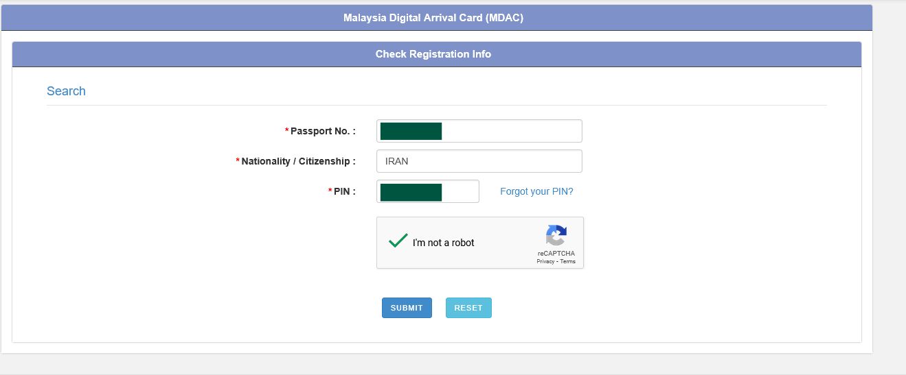 فرم ورود به مالزی (MDAC)